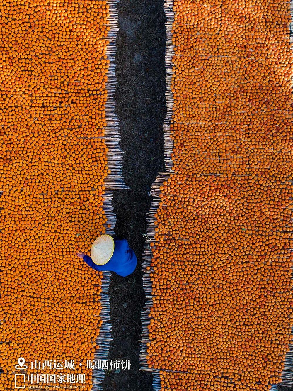 田间地头,崖边沟畔,一棵棵火红的柿树,挂满了红澄澄的小灯笼,农户们开着三轮车,带着梯子钩子,采摘着丰收的喜悦。屋前院后,地里路边,支起了一排排高粱箔子,晾晒着一片片金疙瘩。