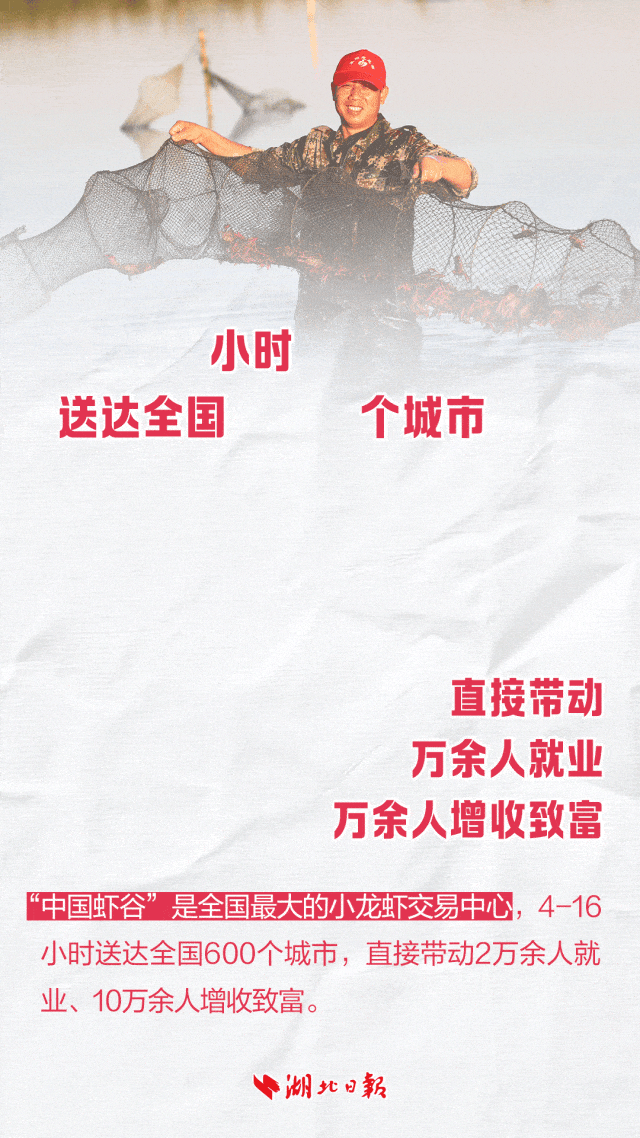 关心乡村振兴。他曾形象而深刻地指出:“各地推动产业振兴,要把‘土特产’这3个字琢磨透。”土特产,“土”是根基,“特”是灵魂,“产”是路径。产业振兴是乡村振兴的重中之重,小龙虾搞成了大产业,澎湃的正是乡村振兴的活力。
