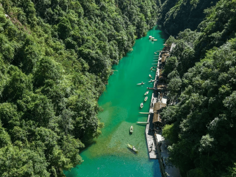 被CNN称为中国最美仙境,澄澈如翡翠的河水让小船仿佛悬浮在空中,人称“中国仙本那”,是拍照爱好者的天堂。核心体验包括悬浮船游览、一线天栈道徒步,船行其间,穿行在碧水丹山之间,两岸溶洞密布,偶尔有猕猴在崖壁上跳跃,仿佛置身于梦幻秘境。晴天上午9-11点光线最好,拍悬浮船无反光,氛围感拉满,是恩施新晋顶流景点。