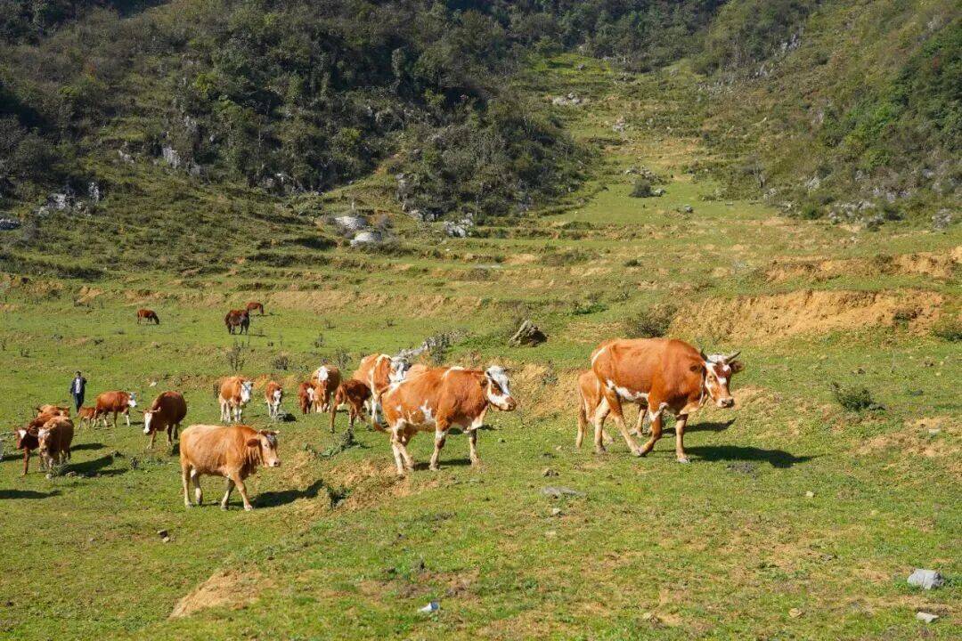 纳雍县水东镇沙坝社区的蛇场坝草场上的牛群(图源:微信公众号“珙桐纳雍”)