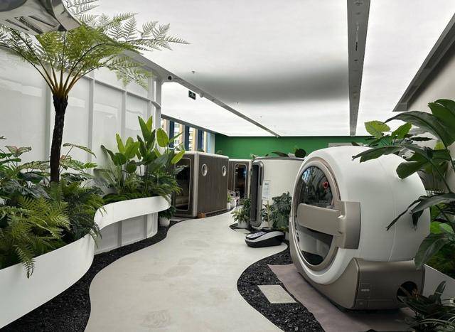 Rlab的氧舱设计也特别贴心,氧舱里有星空顶影院和头等舱按摩椅,使用时能放松身心,还有单人、双人、四人多种规格可选,家庭用或者商业场所用都合适。