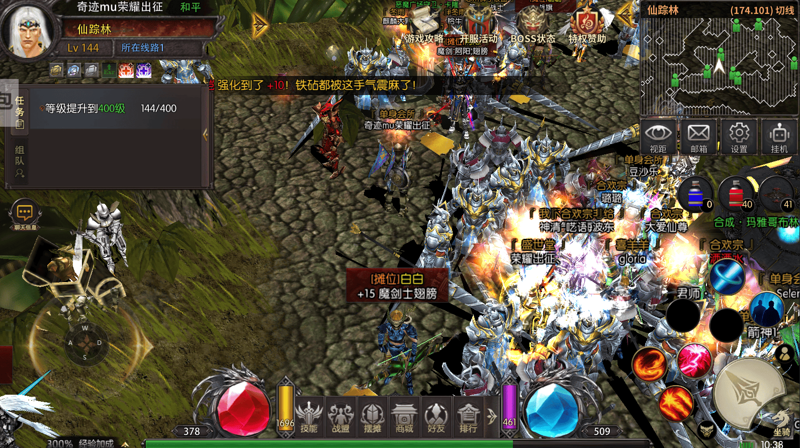 针对移动端优化,游戏新增离线挂机与自动捡物功能,解放玩家双手,适配碎片化体验;装备强化引入保底机制,1-10级强化成功率100%,11-15级失败不降级,彻底解决了端游时期“强化归零”的痛点,让成长更安心。